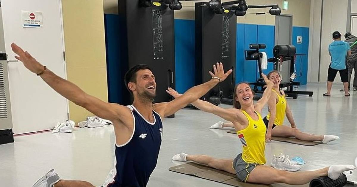 Niemand minder dan nummer één van de wereld in het mannentennis Novak Djokovic. We were actually in the weight room and Marjorie had seen him Novak Djokovic Nina Derwael. The picture taken shows Djokovic doing a split alongside the famous Belgian gymnasts.